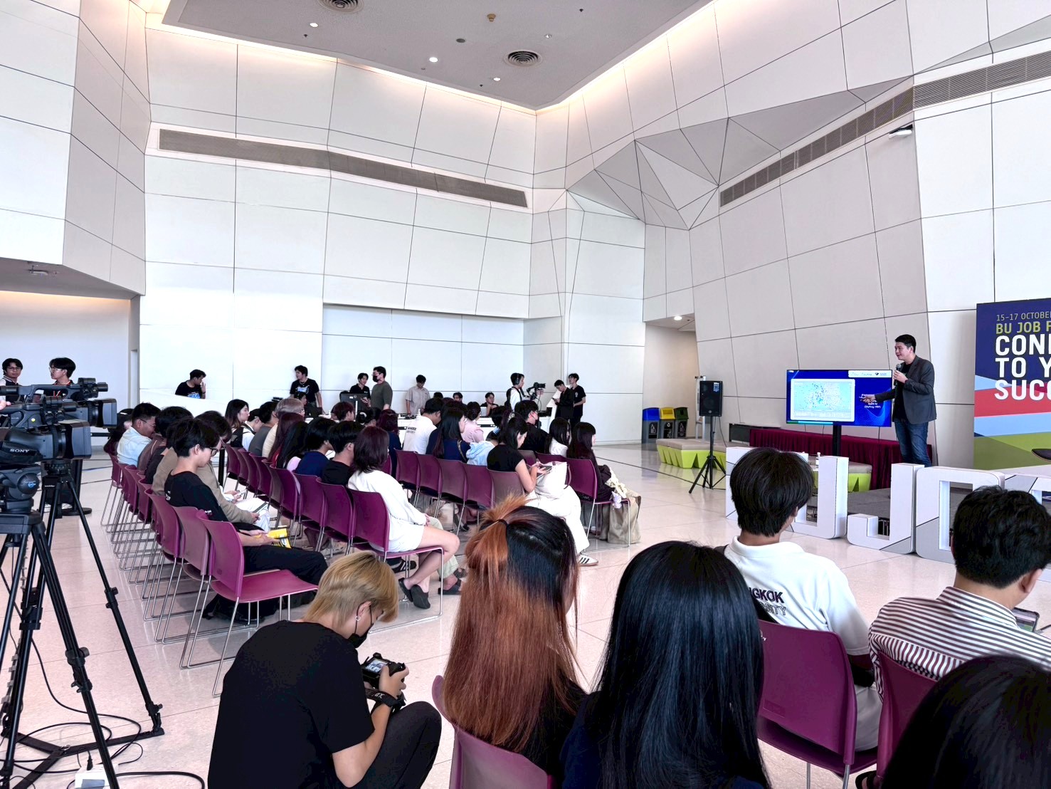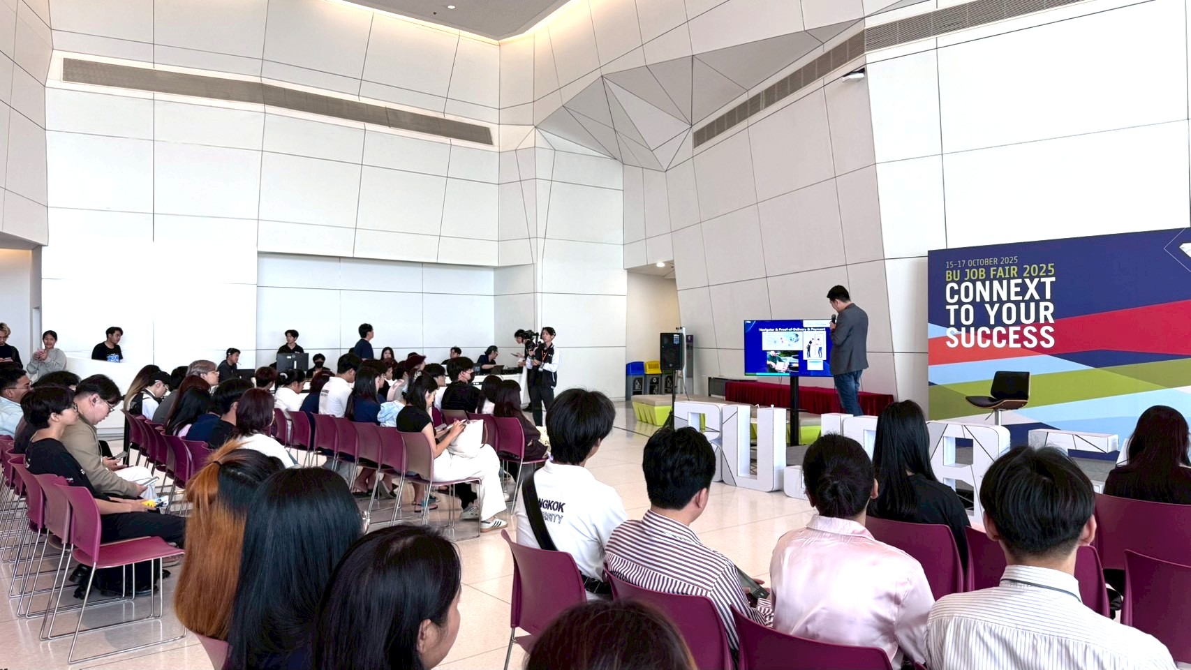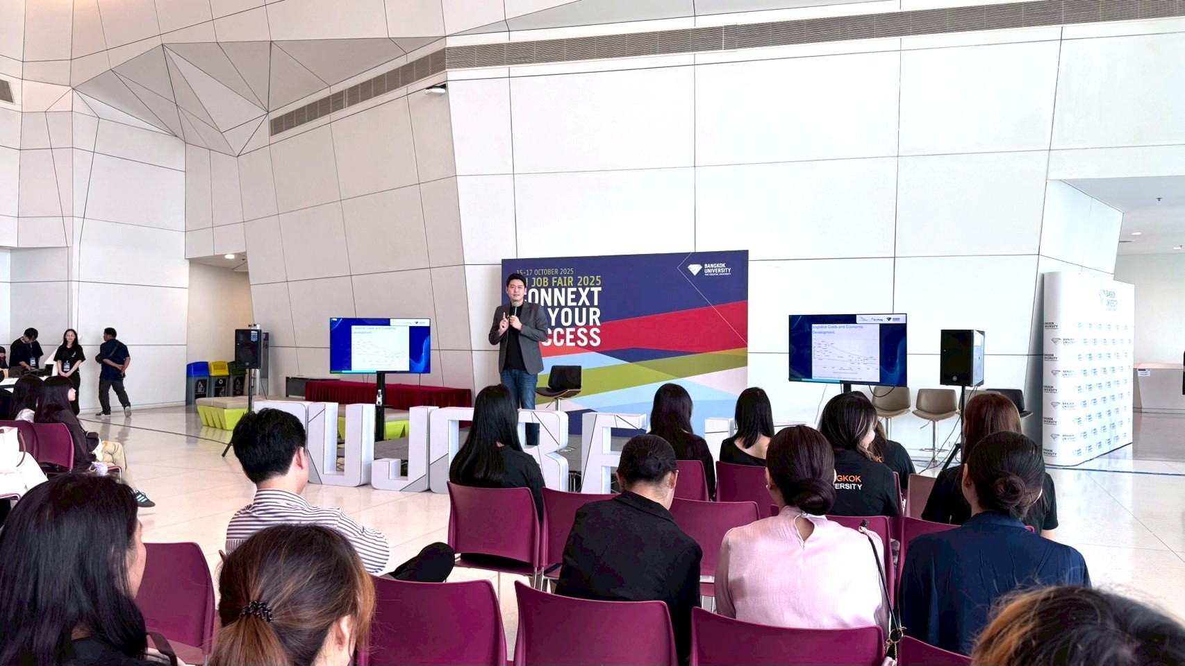 āļāļĢāļīāļĐāļąāļ āļŠāļāļēāļĒāļāļĢāđāļāļ āļāļģāļāļąāļ āļāļģāđāļāļĒ āļāļļāļāđāļĄāļāļąāļ āļāļļāļāļĄāļĄāļŦāļąāļāļāļīāļŠāļļāļ āđāļāđāļĢāļąāļāđāļāļĩāļĒāļĢāļāļīāđāļāđāļ Guest Speaker āđāļāļāļēāļ BU Job Fair 2025 āļ āļĄāļŦāļēāļ§āļīāļāļĒāļēāļĨāļąāļĒāļāļĢāļļāļāđāļāļ (Bangkok University)